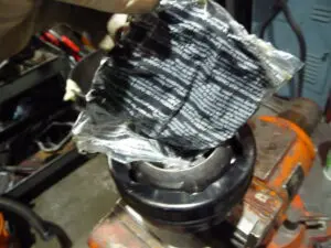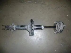 - Remove the spring, bump stop, and covering from one of the struts. Be sure to use a spring compressor.
