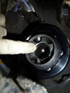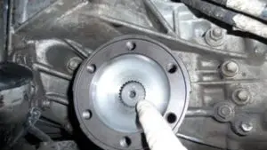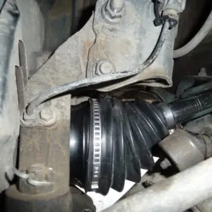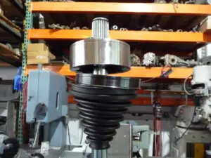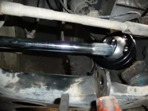 15. With the suspension at full droop (suspension dropped all the way down) measure the distance from the groove in the outer CV to the inner shaft inside the flange on the side where the strut was reinstalled.