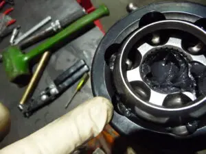 29. Remove outer CV joint and fill with grease until it pushes past the balls.